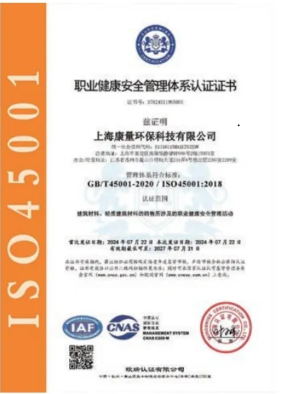 职业健康安全管理体系认证证书