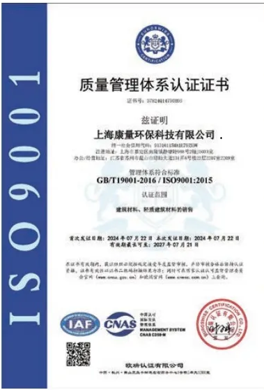 质量管理体系认证证书